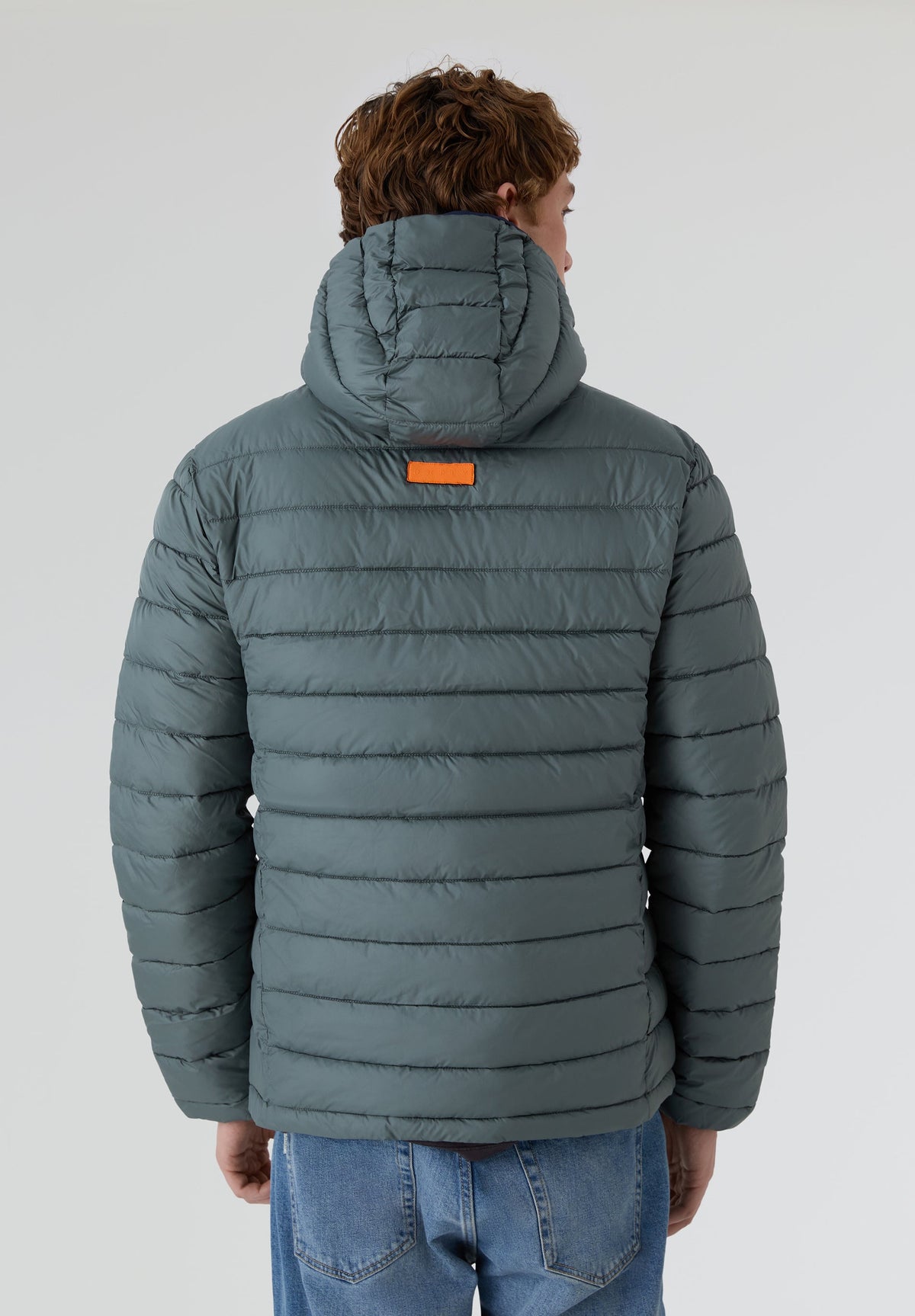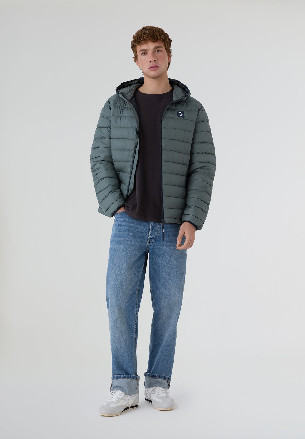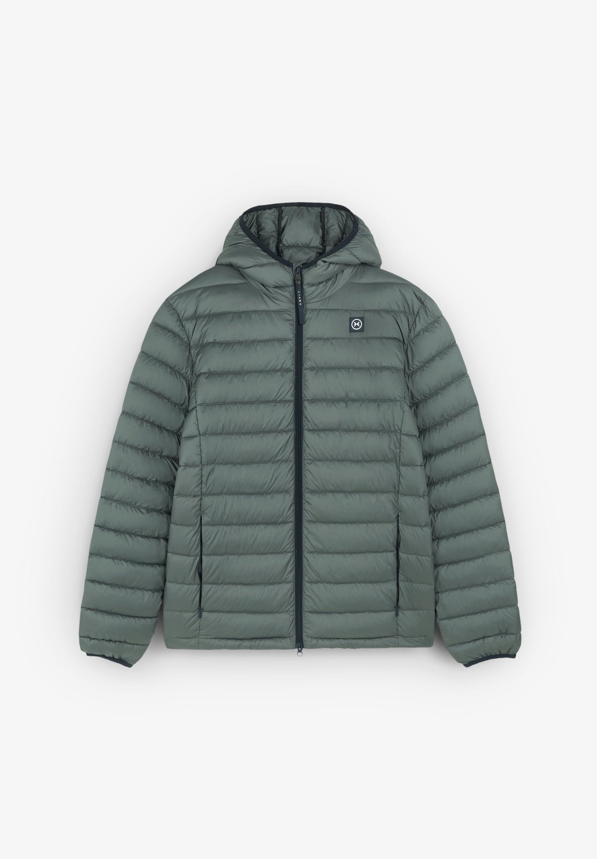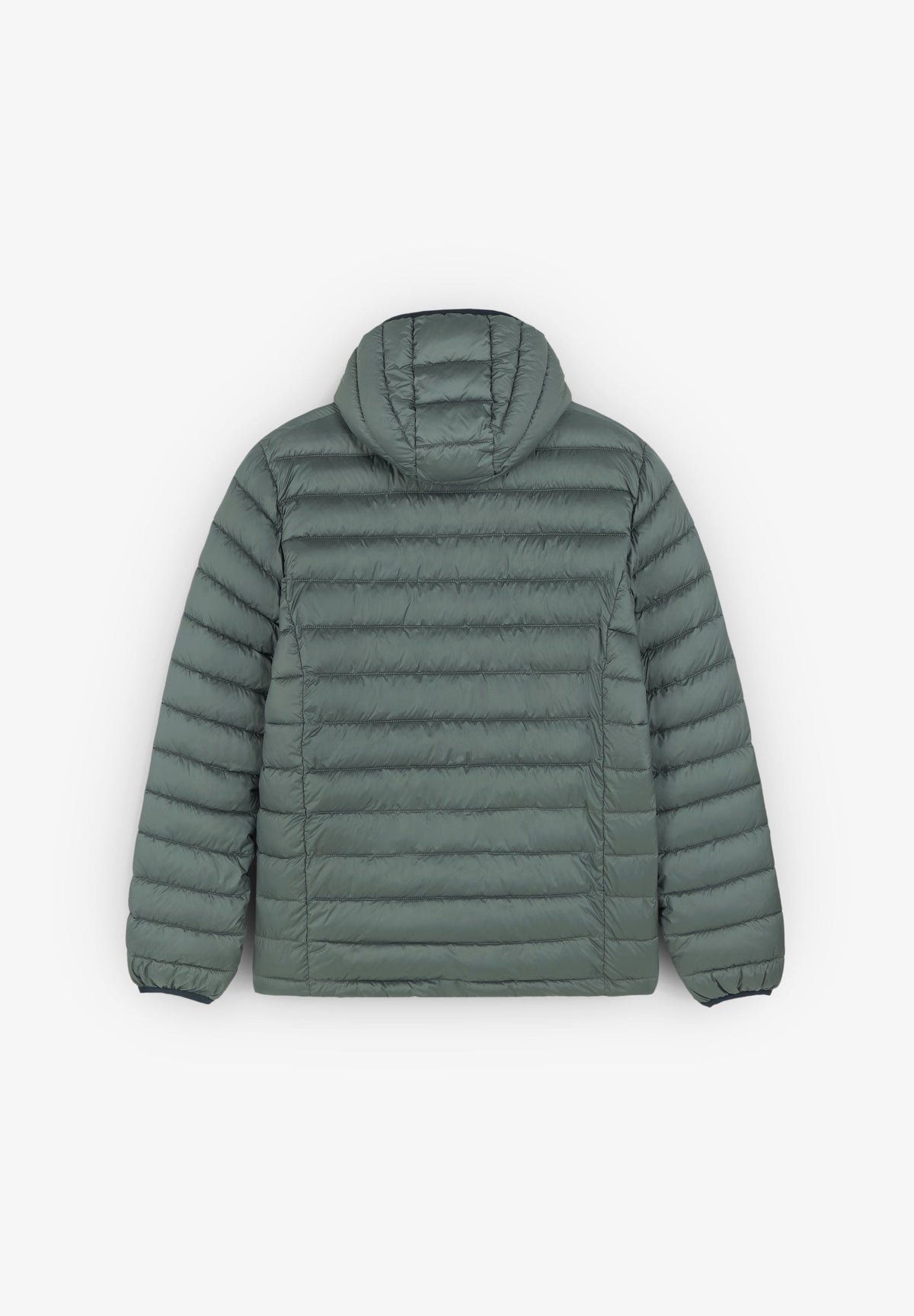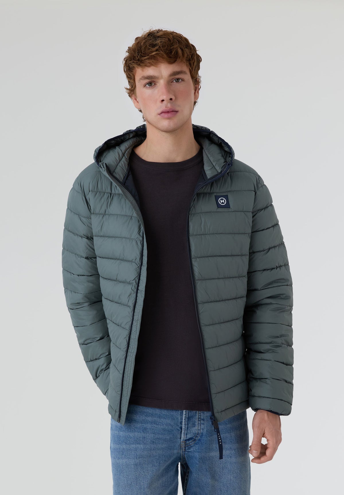 Mat padded jacket made of 100% recycled polyester fabric. Designed to offer a versatile and lightweight look, providing all the comfort and warmth you may need. Water-resistant (suitable for light rain).