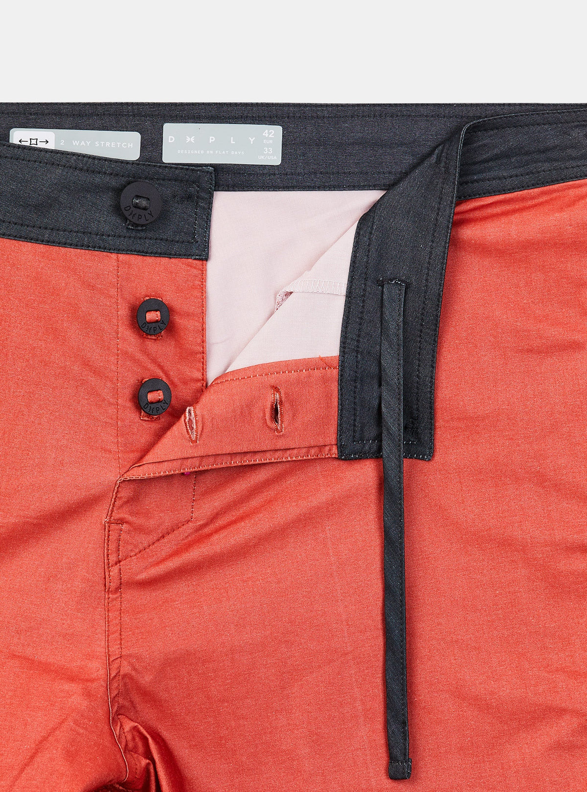 THE OUTLET 9/11 - Up to 70% Premium range boardshort 18" 46 cms made of the finest 2 way stretch fabric. Maximum comfort, fast dry and soft hand feel. Maximum comfort and quick drying. Two side pockets on the side seam and front placket with buttons and buttonhole. Contrast color binding, waistband and back pocket. Mesh lining on the side pockets to release the water and the sand, metal eyelets on the back patch pocket with flap and elastic key holder inside.
