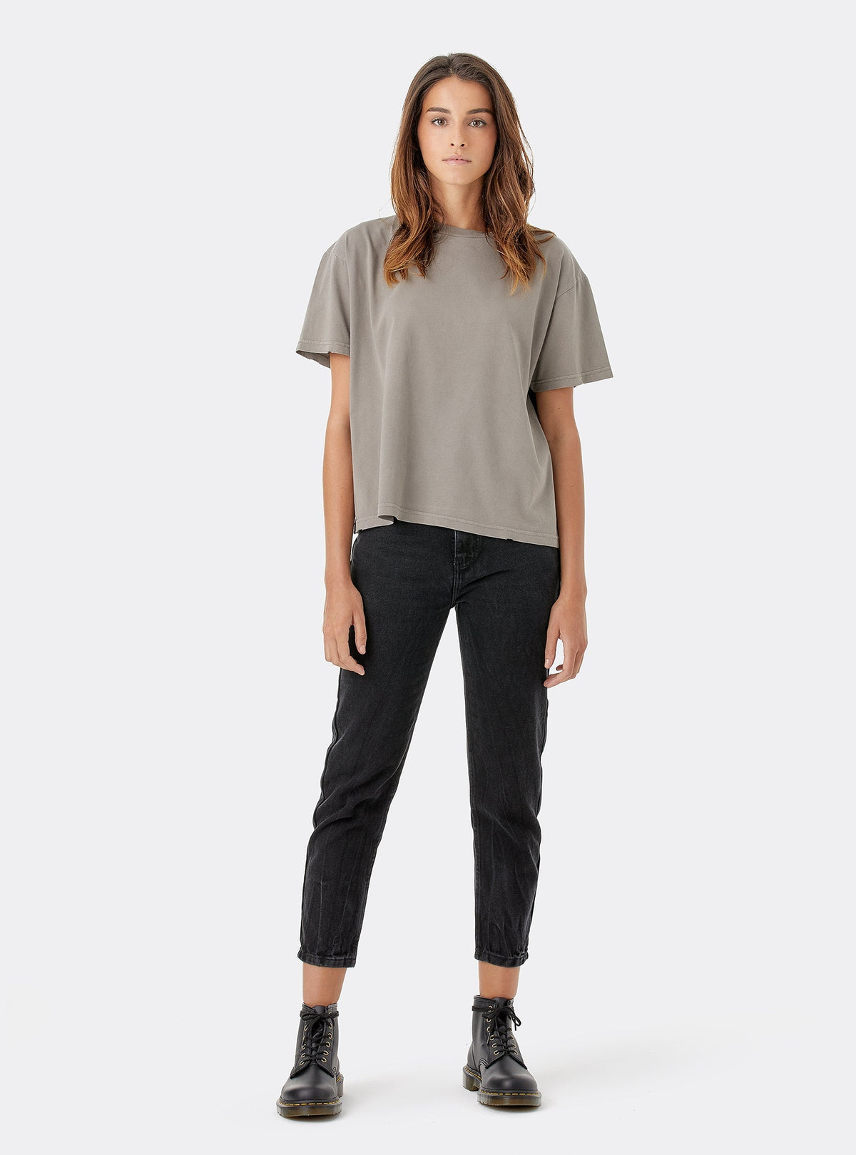 THE OUTLET 9/11 - Up to 70% Relaxed feel cropped T-shirt made from top quality organic cotton. Natural vegetable dyes from the branches of the Quercus infectoria tree, it offers a natural look that ages with time and with you, evolving with a lot of personality . Soft and comfortable on the touch. Manual wear finishes on the collar, cuffs and bottom. Designed to last and timeless from season to season.