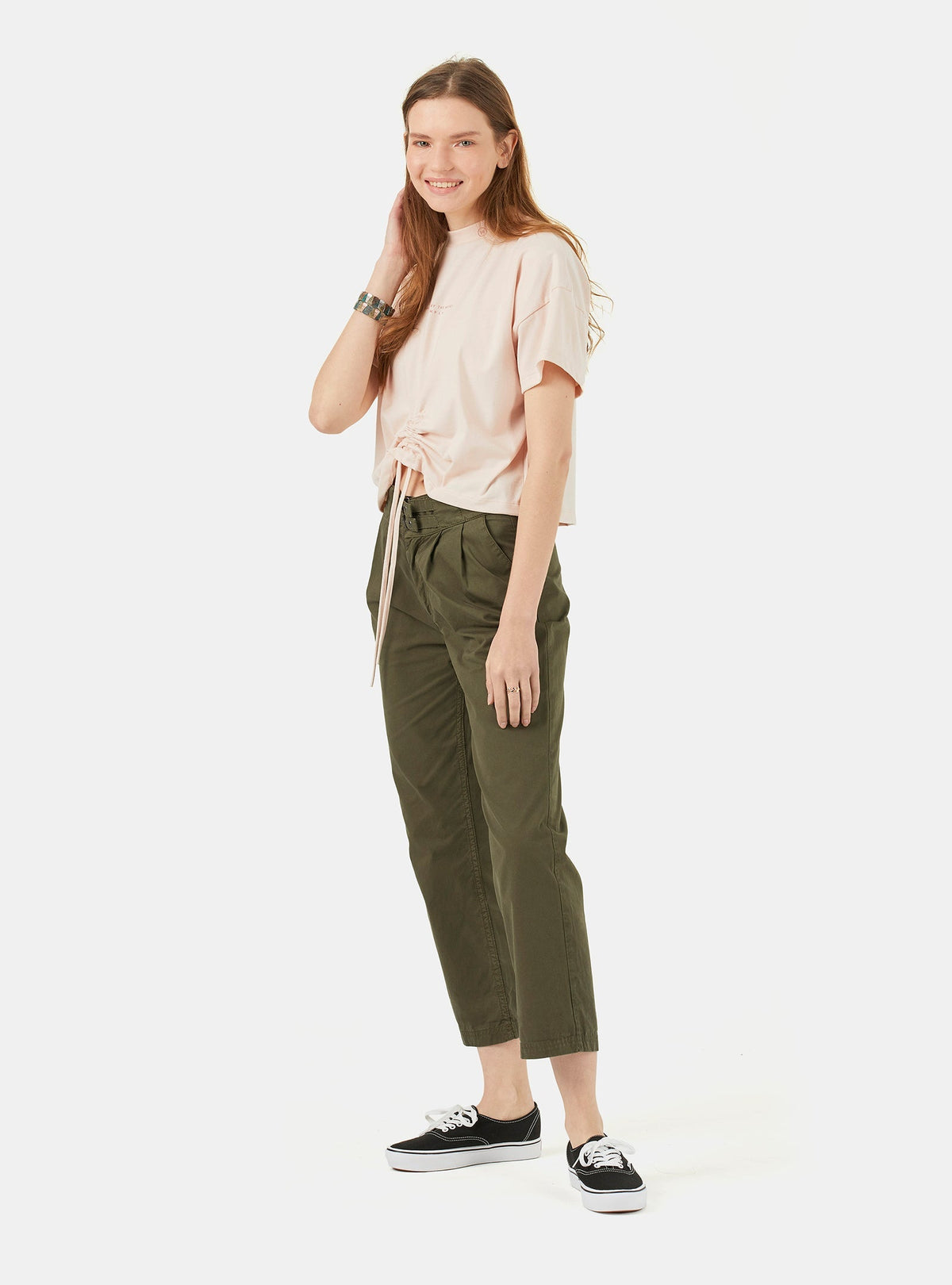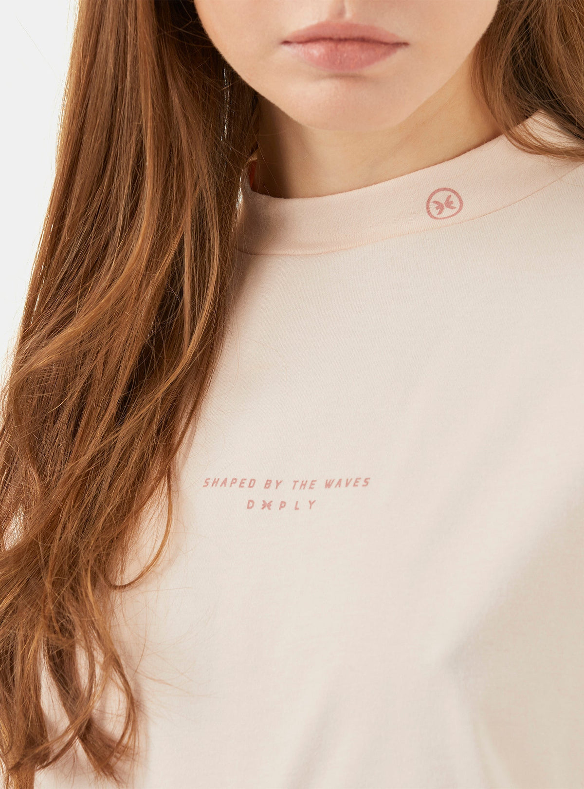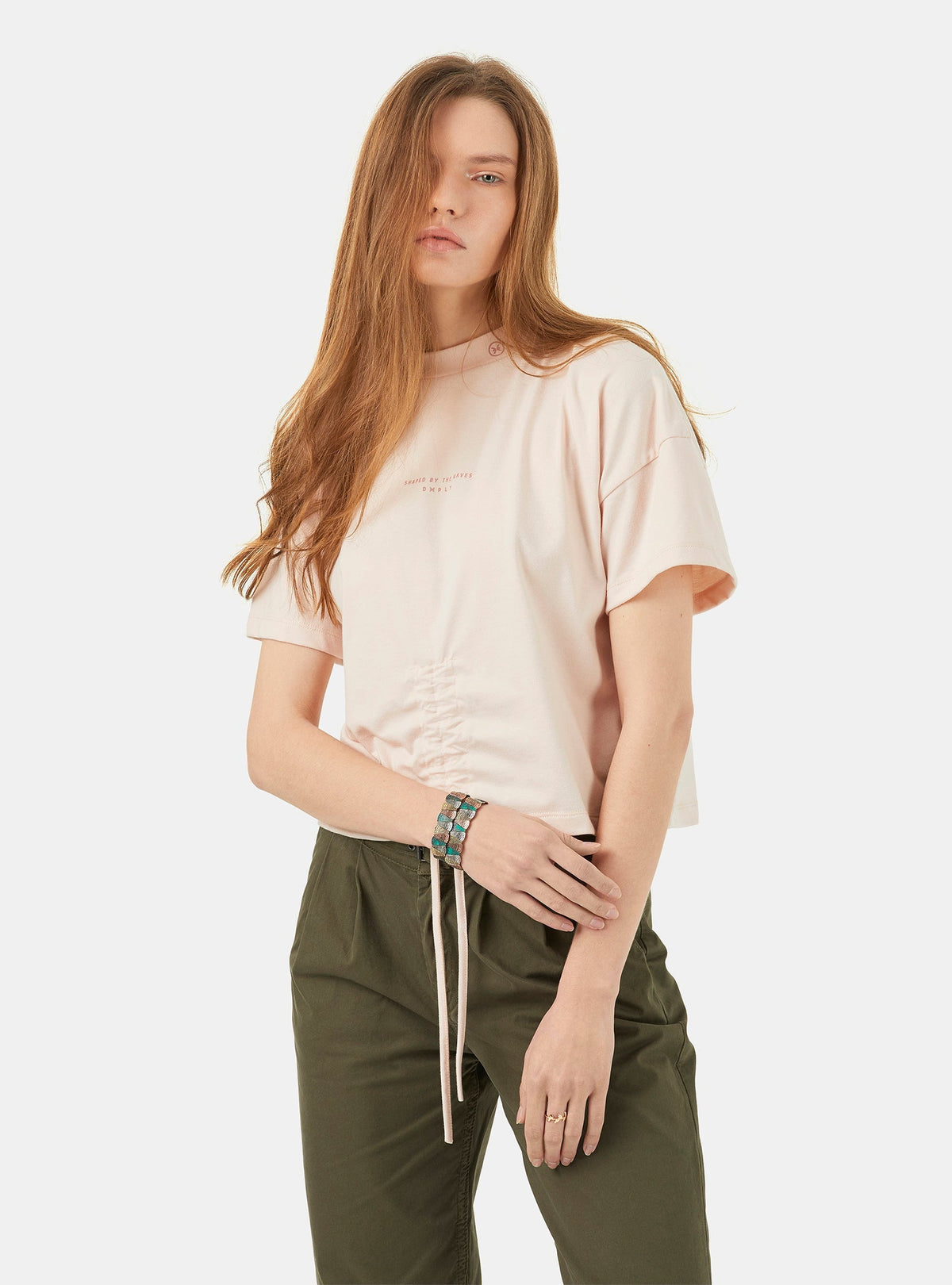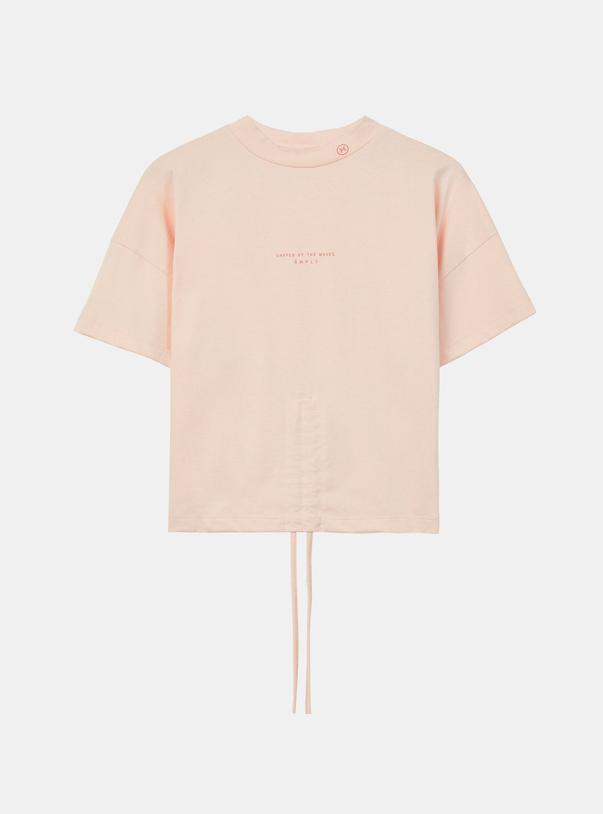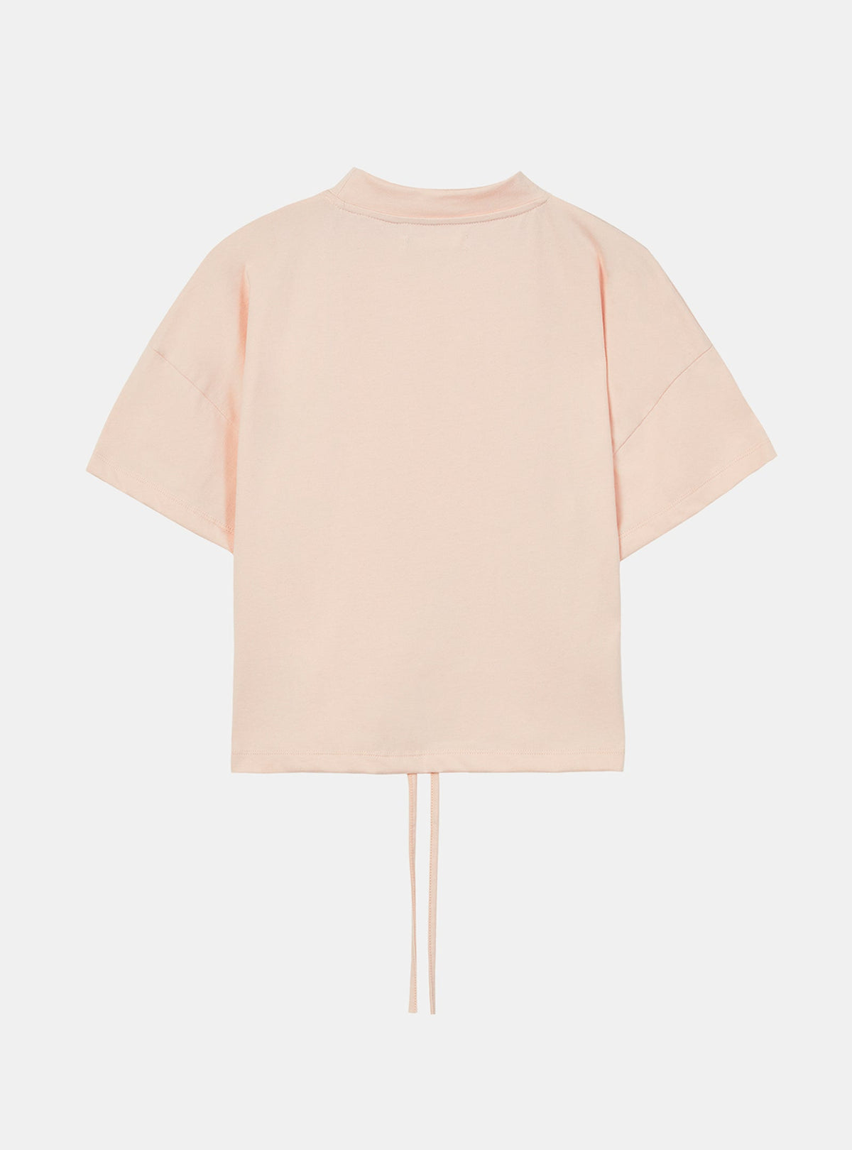 THE OUTLET 9/11 - Up to 70% Turtle neck cropped T-shirt, with loose shoulders. Made of cotton with soft touch hand feel. String system on the bottom front that gives to the garment the plastic versatility of double fit and function. On the front you can find a Deeply small print on the collar and a placed statement print on the centre chest matching background colour. Available also in light pink.