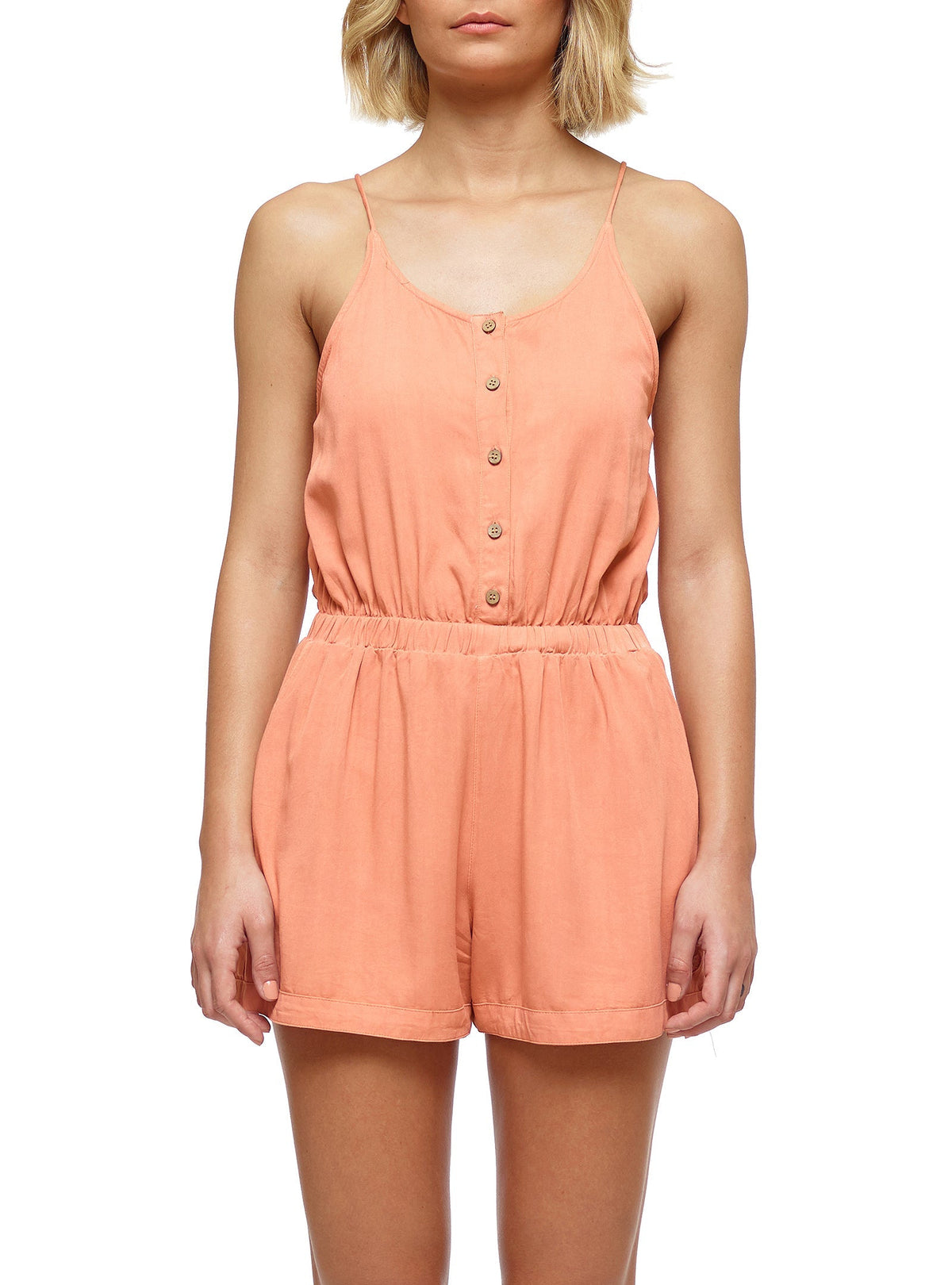 - Short dungarees with adjustable straps and side pockets; Elasticated belt with front buttons;