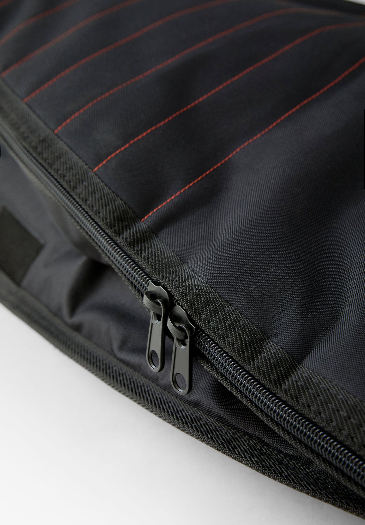 A surfboard bag designed to protect your board every day. Equipped with everything you need to keep it safe: 5mm shock-absorbing foam, durable zippers, lightweight and water-resistant nylon fabric, and a velcro closure panel that allows you to carry your board without removing the fins.