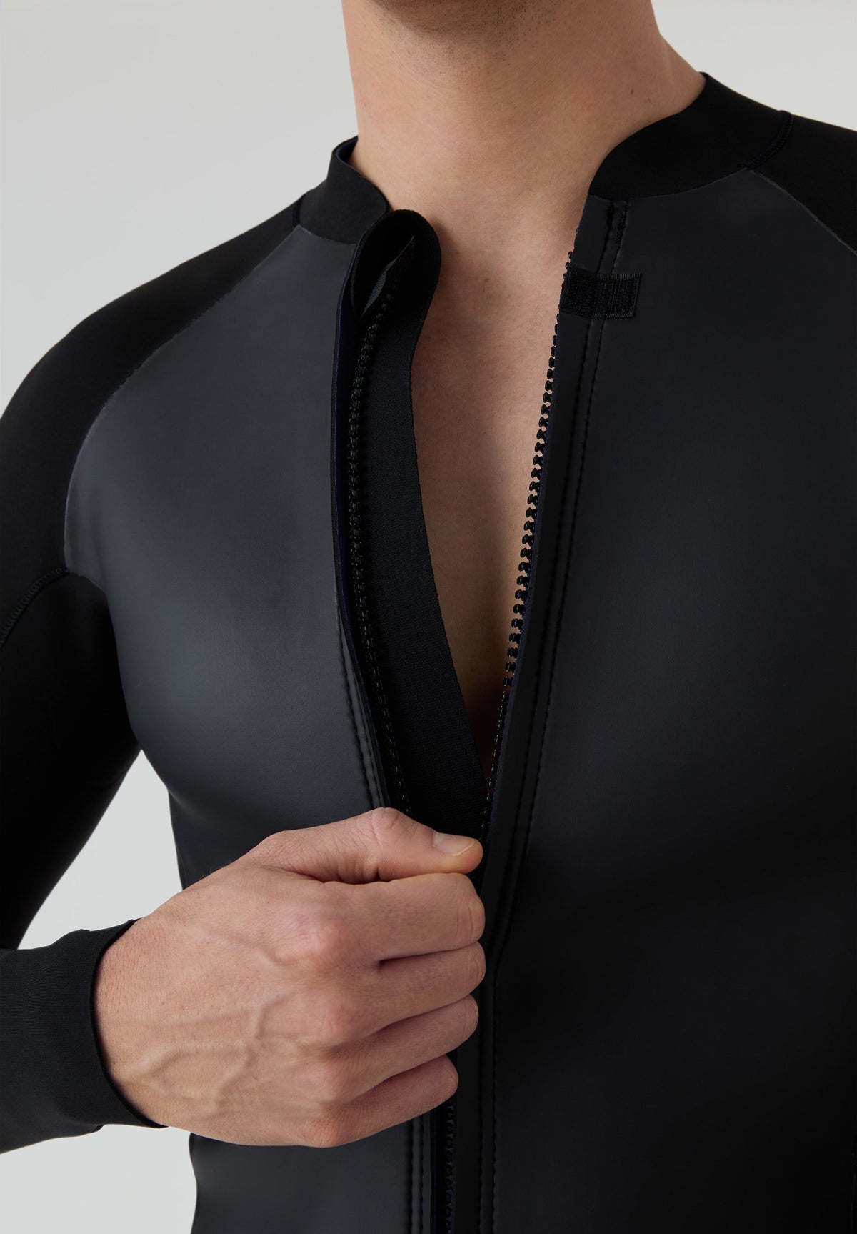 2mm neoprene rashvest with long sleeves and a YKK front zipper, ideal for warm waters above 20 °C.