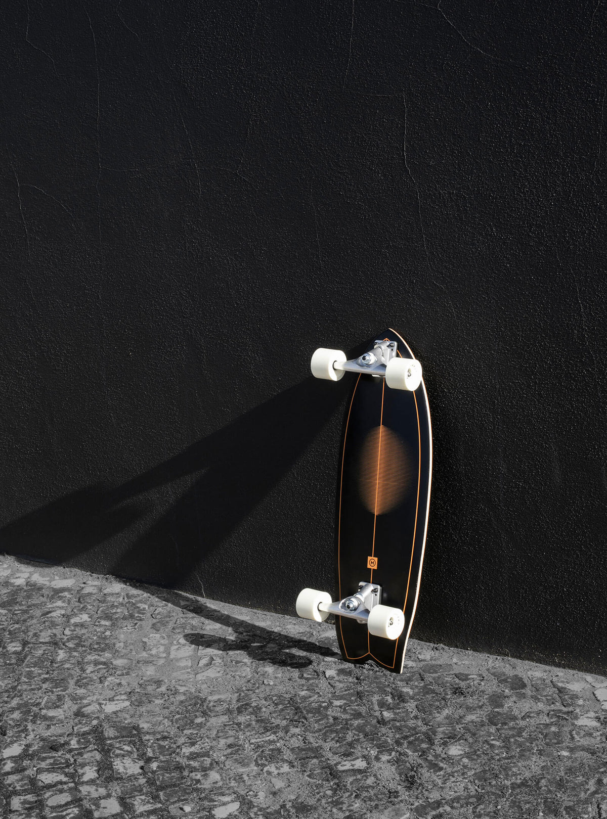 The Sound Waves surf skate has a wide and short shape inspired by the classic fish surfboard, allows to easily pump throw out the sections on flat days. It’s 30’’ long and 9.75’’ wide. The wheels size is 66x51mm with a hard-ness of 80A and ABEC 7 bearings with spacers. The board is made with 7 PLY of qualitative Canadian maple.